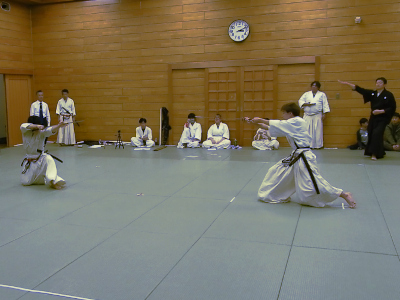さて合気道が終わって開催されたのが、杖道(捕杖乱取)、居合道(抜刀試合)、柔拳法(組手乱取)。合気道で時間も押して、ちょっと押せ押せの中、試合及び形審査が実施されました。